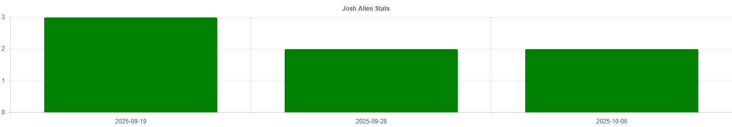Josh Allen (BUF) has thrown more than 1.5 passing touchdowns in 100% of his last 3 games, currently on a 3-game streak, as he faces ATL.