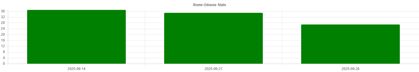 Rome Odunze (CHI) has exceeded 24.5 yards for his longest reception in each of his last 3 games (100% hit rate), with a 3-game streak, entering the matchup against WAS.