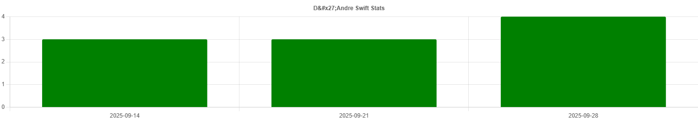 D'Andre Swift (CHI) has exceeded 2.5 receptions in 100% of his last 3 games and is currently on a 4-game streak hitting the Over, facing WAS.