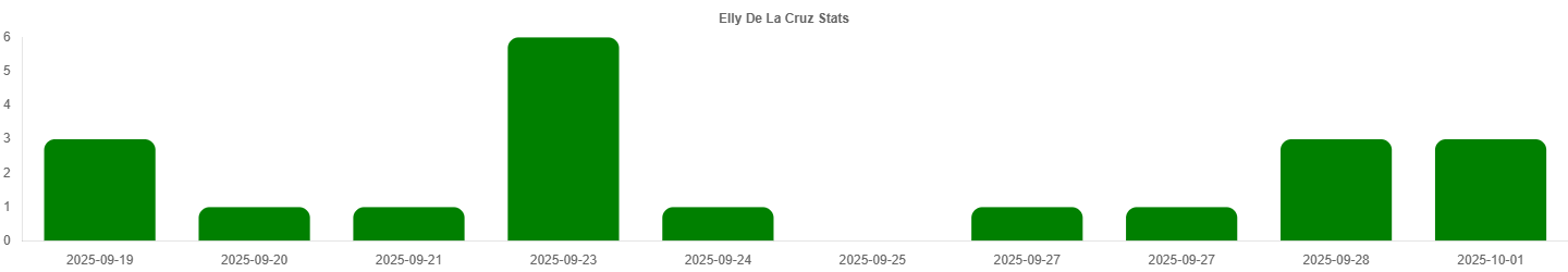 Elly De La Cruz is getting it done—he’s hit the Over on hits, runs, and RBIs in 90 percent of his last 10 games and is riding a 4-game streak heading into tonight with the line set at just 0.5. Just passing along the numbers, but that’s some serious production lately for the Reds’ young star.