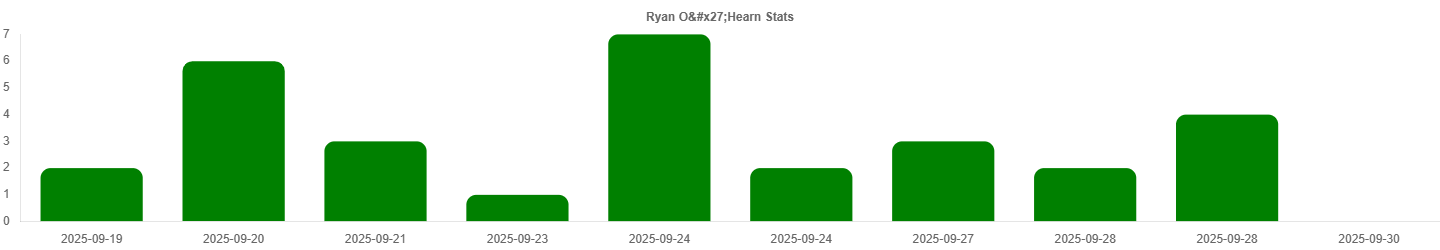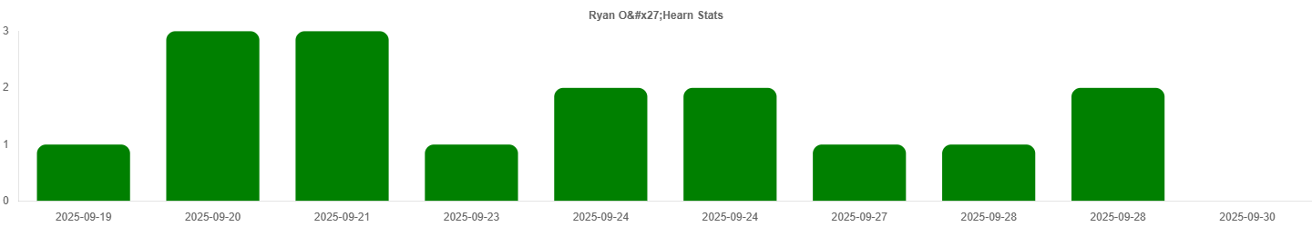Ryan O'Hearn of SD has recorded over 0.5 hits in 90% of his last 10 games and is currently on a 0-game hit streak, facing CHC.