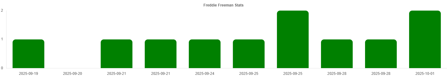 Freddie Freeman (LAD) has recorded more than 0.5 hits in 90% of his last 10 games and is currently on an 8-game hit streak going into the matchup with CIN.